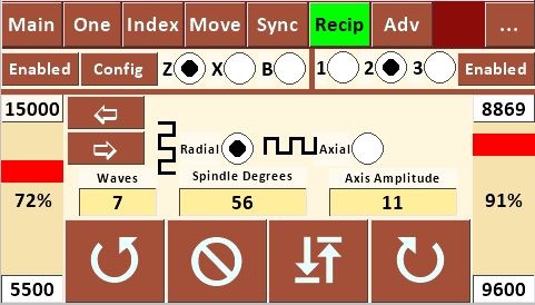 Axis Amplitude  This determines the height for the entire pattern (amount of Z, X, or B axis movement) and is dependent upon value entered in the Configuration Screen for Distance/360 for the axis you are using. If using the B axis with radial movement, the gear ratio sets this value.