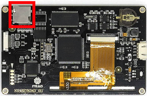 Secure the microSD card which has the Nextion configuration file (from step 2). Put this microSD card into the Nextion's microSD card slot.