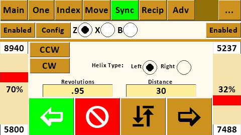 The value of the Revolutions determines how far around the piece the helix will travel based on the spindle rotating. The value of 0.95 illustrated will rotate the spindle