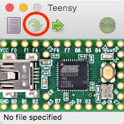 Step 4f Select the download button (circled in red in the picture to the right) on the Teensy loader program to load the program file onto the Teensy. |