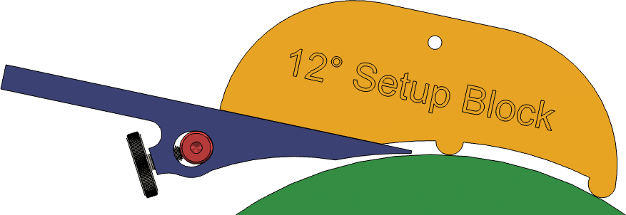 A 12° setup block (yellow part; also 3D-printed) is available separately. 12° is a sharpening edge angle I often use. The Tormek AngleMaster (WM-200) could also be used to set the angle. The USBs and grinding wheels shown in the pictures to the right are NOT included.. Prices shown do not include taxes nor shipping. |